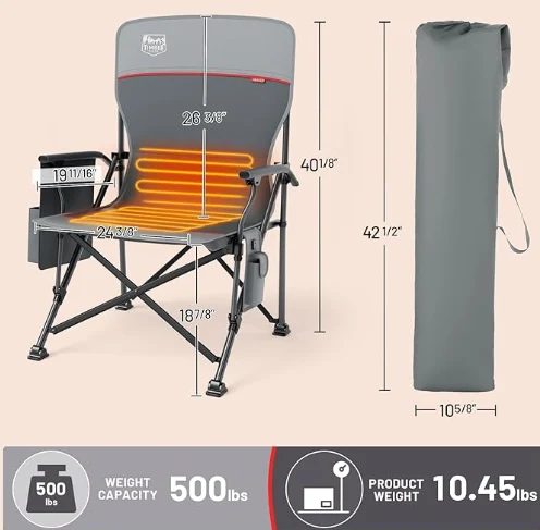 Niestandardowe podgrzewane krzesło, podwójne strefy ogrzewania do tyłu i siedzenie rozgrzewa się do 131 ° F w zaledwie 10 sekund. Trzy ustawienia ciepła (104 ° F, 122 ° F, 131 ° F) zapewniają ciepło na dowolną okazję na zewnątrz (bateria nie jest wliczona).