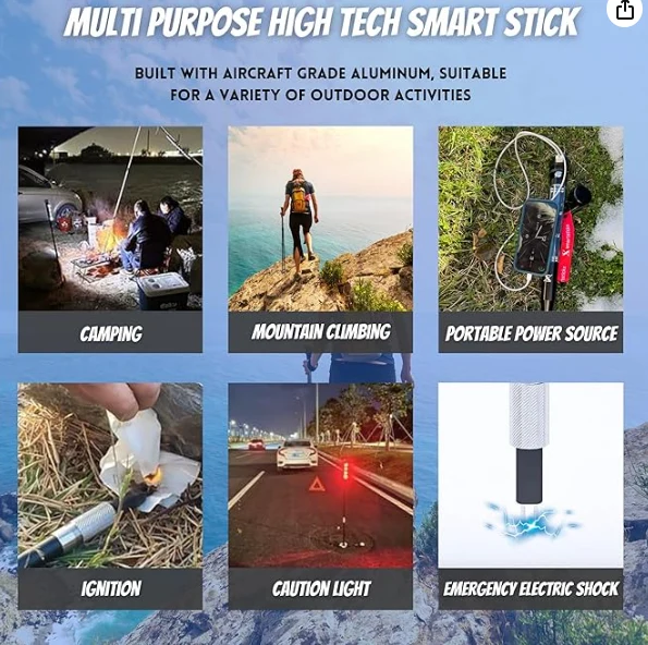 Taktyczne sztyfcie turystyczne może łatwo zwiększyć smartfon lub dowolne inne urządzenie USB za pomocą wygodnego portu USB. Nigdy nie martw się o noszenie banku energetycznego, gdy masz patyk turystyczny.