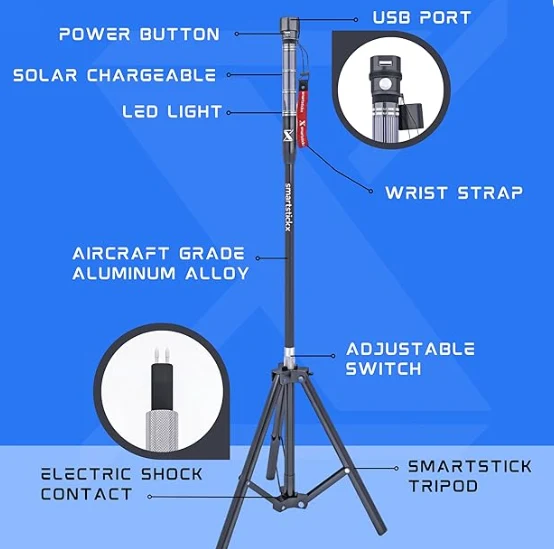 LED Light Trekking słup, światło LED, które zapewnia imponujące 400 lumenów światła silniejszego niż przeciętna ręczna latarka, która może trwać do 10 godzin na jednym ładowaniu. Wysokiej jakości słupy trekkingowe do pieszych wędrówek, biwakowania lub innych zajęć nocnych i migające światło w każdej sytuacji awaryjnej