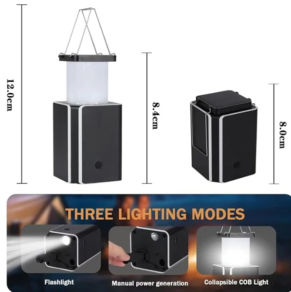 LED Słoneczne światło kempingowe, awaryjne kempingowe lampiony ręcznie wytwarzanie energii. Jeśli nie masz ładowarki i nie ma słońca, ten ręcznie zwężony generator jest idealny do ładowania światła.