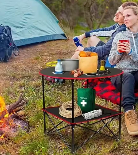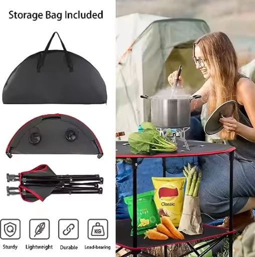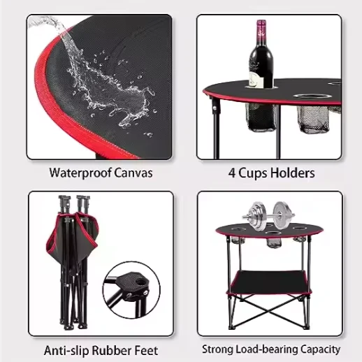 Stół plażowy na świeżym powietrzu. Składany kwadratowy stół na płótnie może być nie tylko używany w pomieszczeniu, ale także do biwakowania, wędkowania, pieszych, plaży, piknik , Keys itp., Co sprawia, że przekąski podczas zajęć na świeżym powietrzu jest łatwiejsze i czystsze. Na najwyższym poziomie stołu znajduje się kolejny poziom dla dodatkowej przestrzeni do przechowywania jedzenia.