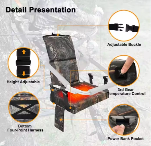 Podgrzewane krzesło na zewnątrz, oferuje zarówno siłę, jak i komfort, i zaprojektowane tak, aby wytrzymać nierówne warunki na zewnątrz, zapewniając jednocześnie silne wsparcie w siedzeniu, zapewniając wygodne polowanie na wiele godzin