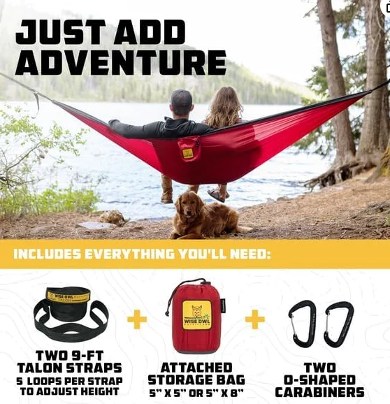 Przenośny hamak 3 w 1, nasz silny hamak to rozsądne rozwiązanie, które jest zszyte do ostatniego! Jest wyposażony w 2, 9-metrowe paski Talon, 2 karabinery w kształcie O i dołączoną torbę do przechowywania. Tak trwałe, jak łatwo jest ustawić, nasz hamak jest niezbędnym kempingiem.